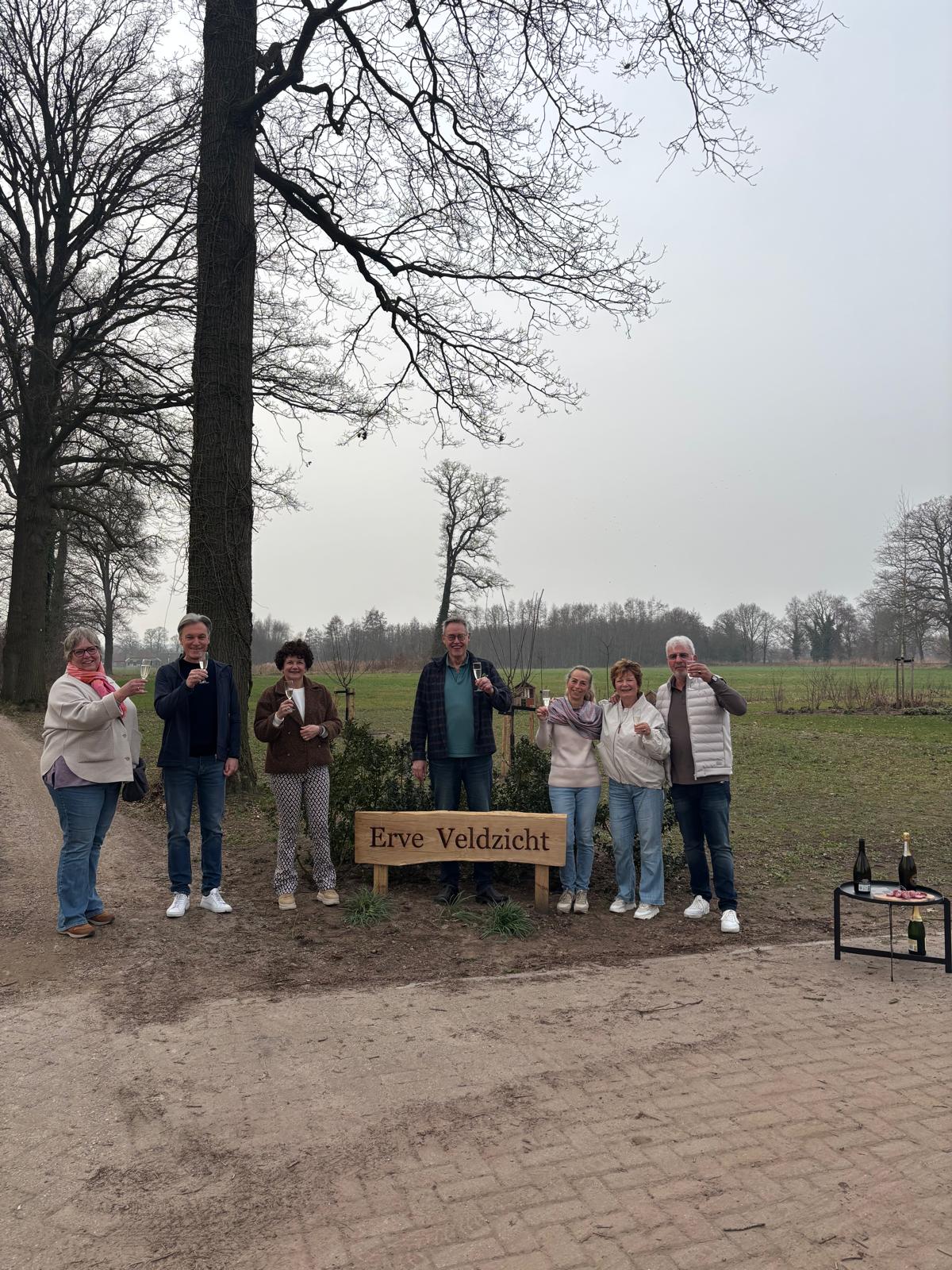 Met trots herstellen wij als bewoners vandaag 7 maart de historische naam Erve Veldzicht als eerbetoon aan de geschiedenis van deze plek.