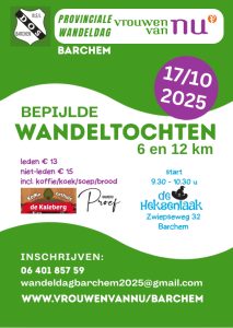 Vrouwen van Nu afdeling Barchem organiseert dit jaar op 17 oktober de Provinciale wandeldag in ons mooie Barchem. Deelname staat open voor iedereen, je hoeft geen lid te zijn van de Vrouwen van Nu. Dus trommel een aantal vrienden of buren op en doe mee!